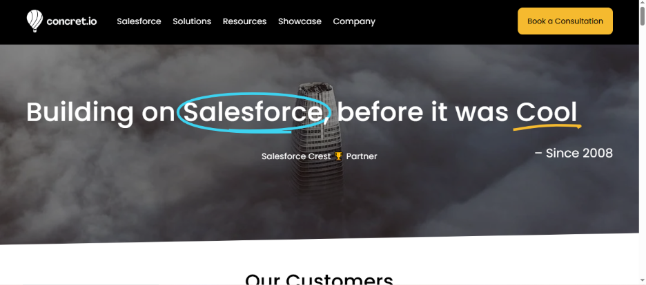 Concretio is a Crest Partner that provides Salesforce consulting services, development services, customization services, and support services. They have a reputation for having Salesforce integration expertise, Salesforce CPQ expertise, and Salesforce mobile application development skills.