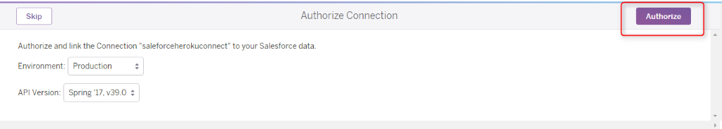 Select your API Version and click “Authorize,” as shown in the image below. Log in using credentials. This will begin your Heroku Salesforce integration.
