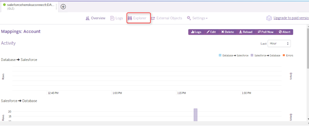 Once you’ve done it all, data from the Salesforce object will automatically synchronize with the Heroku application. You can also monitor the Salesforce data with the “Explorer” option at the top menu on the Heroku dashboard.