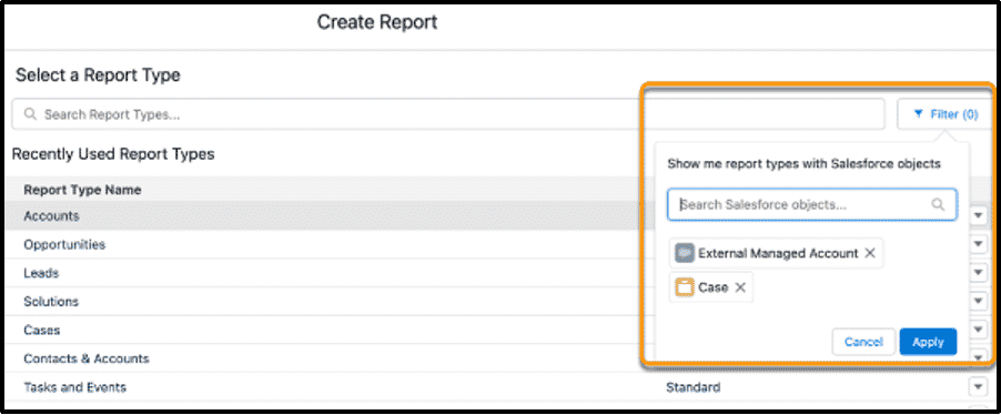 Reports based on selected Salesforce objects (Beta)