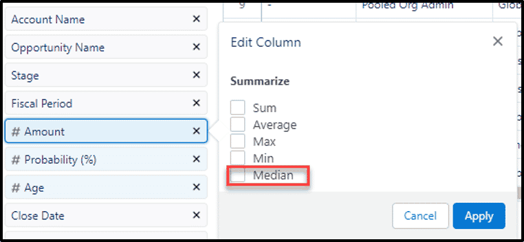 Summary functions on reports also consist of the Median function now