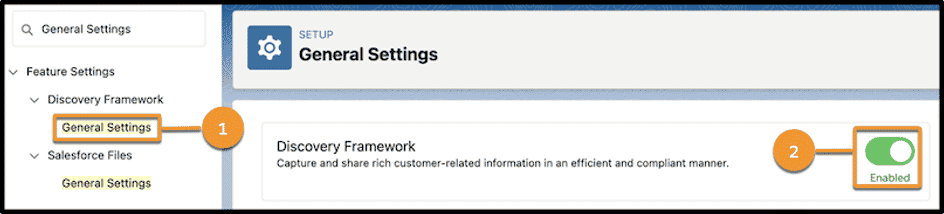 Setup→Discovery Framework→General Settings→Discovery Framework.