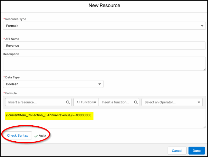 You can now access the syntax checking feature with the enhanced formula builder to check the formula created from within the formula builder.