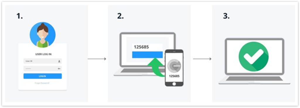 It combines your credentials (username and password) with something you have (keycard or a mobile device), as depicted in the picture.